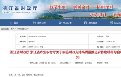 各市、縣(市、區(qū))財(cái)政局、農(nóng)業(yè)農(nóng)村局: 為全面貫徹落實(shí)《浙江省人民政府辦公廳關(guān)于高質(zhì)量推進(jìn)農(nóng)作物秸稈綜合利用的實(shí)施意見(jiàn)》(浙政辦發(fā)〔202...