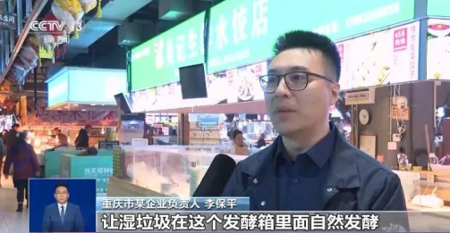 重慶市某企業(yè)負(fù)責(zé)人 李保平:就是通過(guò)有機(jī)菌種,讓濕垃圾在發(fā)酵箱里面自然發(fā)酵,把水,還有二氧化碳,這些全部分解出來(lái)。水就通過(guò)我們這個(gè)污水處理設(shè)備,然后達(dá)到市政排放標(biāo)準(zhǔn)之后直接排入地下管網(wǎng)。二氧化碳我們還有一個(gè)專門(mén)的廢氣處置設(shè)備,也是達(dá)到市政排放標(biāo)準(zhǔn)之后排入大氣中。