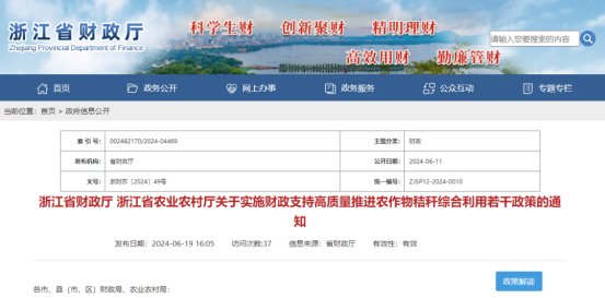 浙江政策 | 補(bǔ)貼秸稈產(chǎn)業(yè)化利用項(xiàng)目建設(shè),支持各級(jí)政府產(chǎn)業(yè)基金投資秸稈利用項(xiàng)目