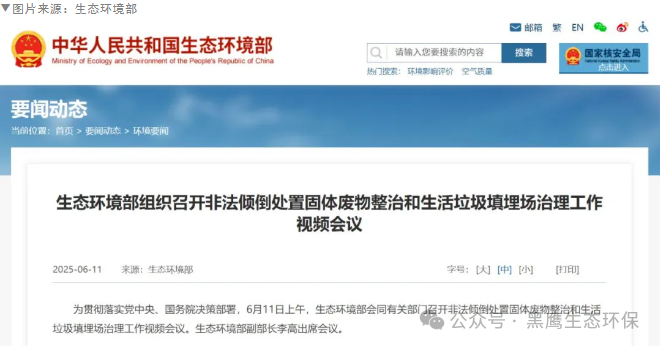 早在6月11日,生態(tài)環(huán)境部就會同有關(guān)部門,召開了非法傾倒處置固體廢物整治和生活垃圾填埋場治理工作視頻會議。生態(tài)環(huán)境部副部長李高出席會議。
